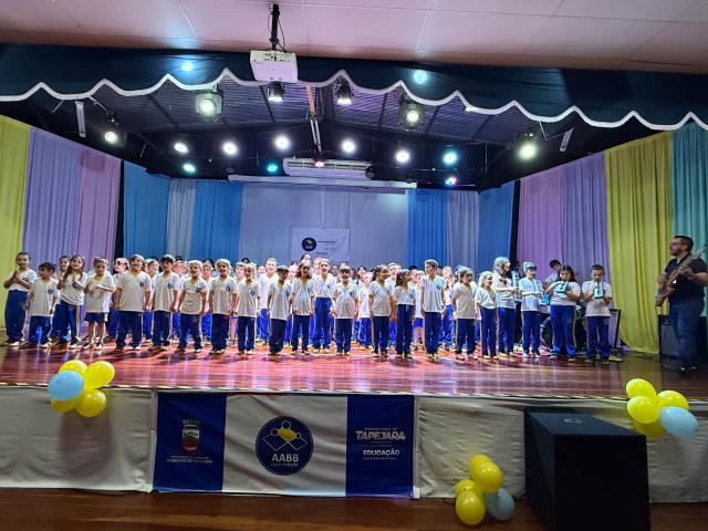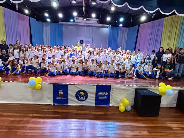 Na noite de quinta-feira (13), o Centro Cultural José Maria Vigo da Silveira recebeu o evento de encerramento das atividades do Programa AABB Comunidade, desenvolvido pela Administração Municipal, por meio da Secretaria de Educação, em parceria com o Banco do Brasil. As famílias e a comunidade acompanharam as apresentações preparadas pelos estudantes ao longo do ano.