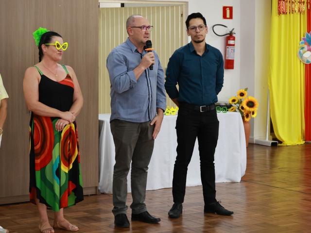 A solenidade reuniu a presidente Maria Pastorello Pasquali, a primeira-dama Nara Terezinha Wolff, o vice-prefeito Rodinei Bruel (Gipe) e sua esposa, Vanderleia Favreto, além do secretário de Desenvolvimento Social, Matheus Emanuel de Paula, servidores, coordenadores da Administração Municipal e membros da diretoria do grupo.