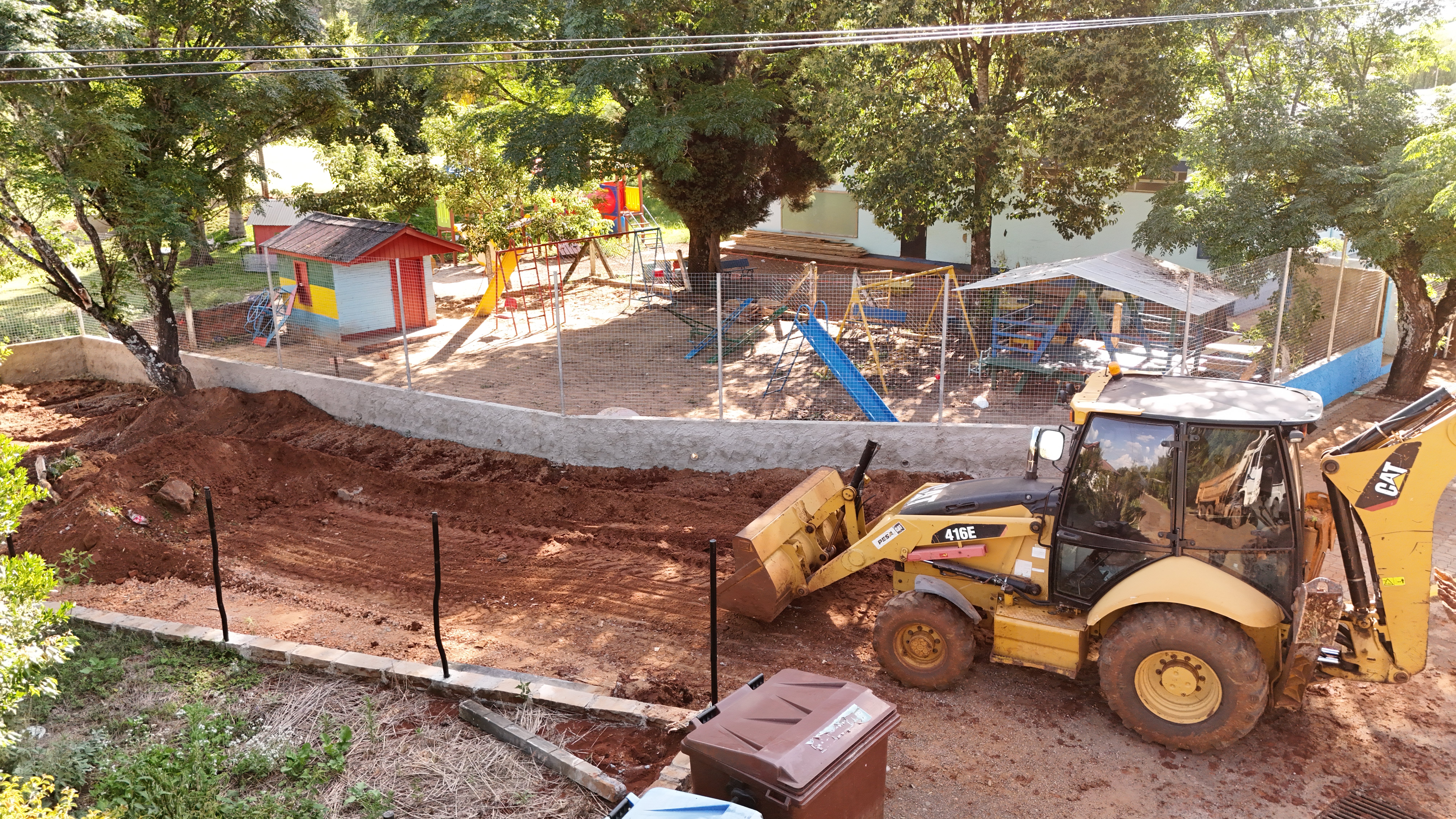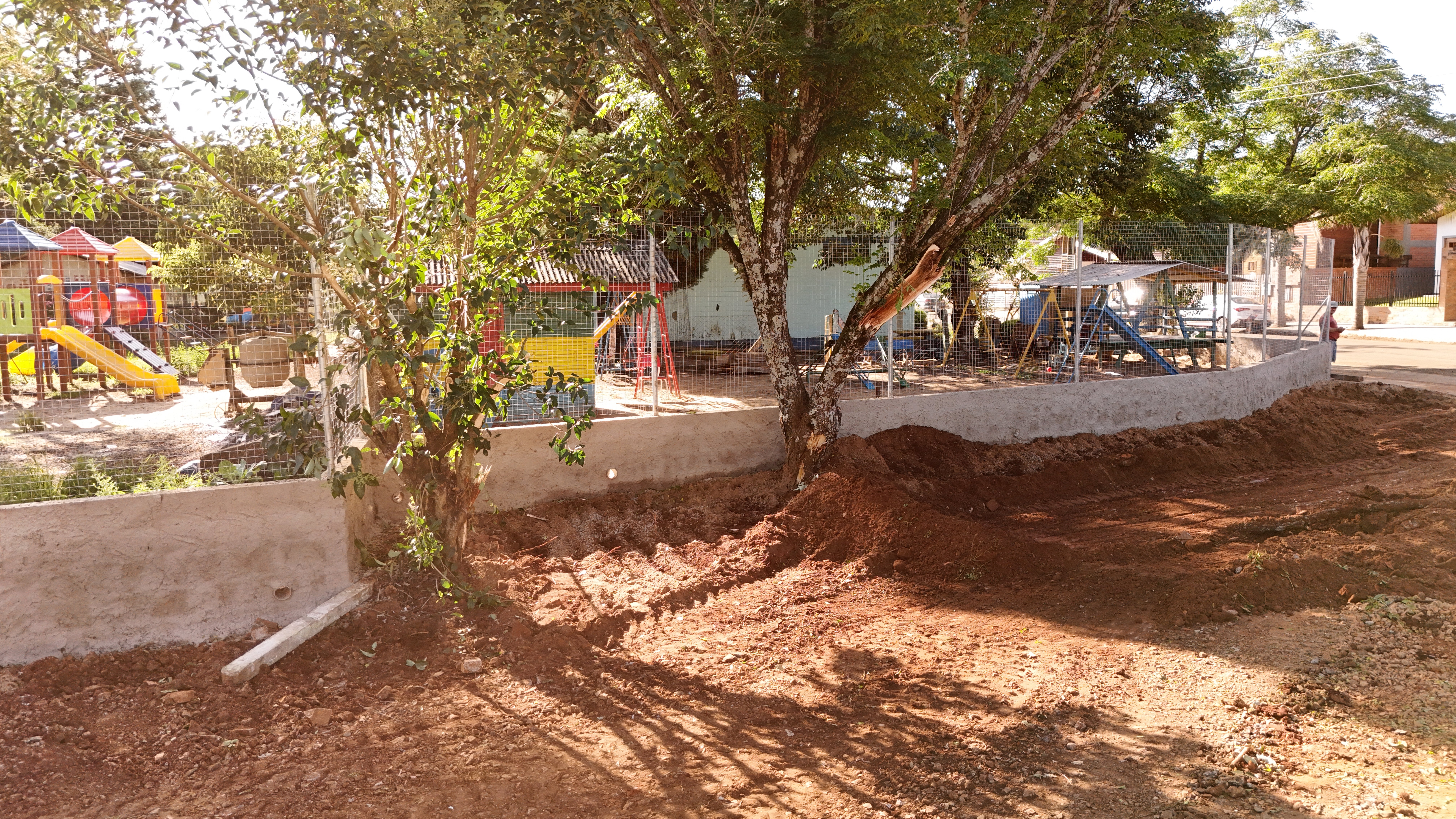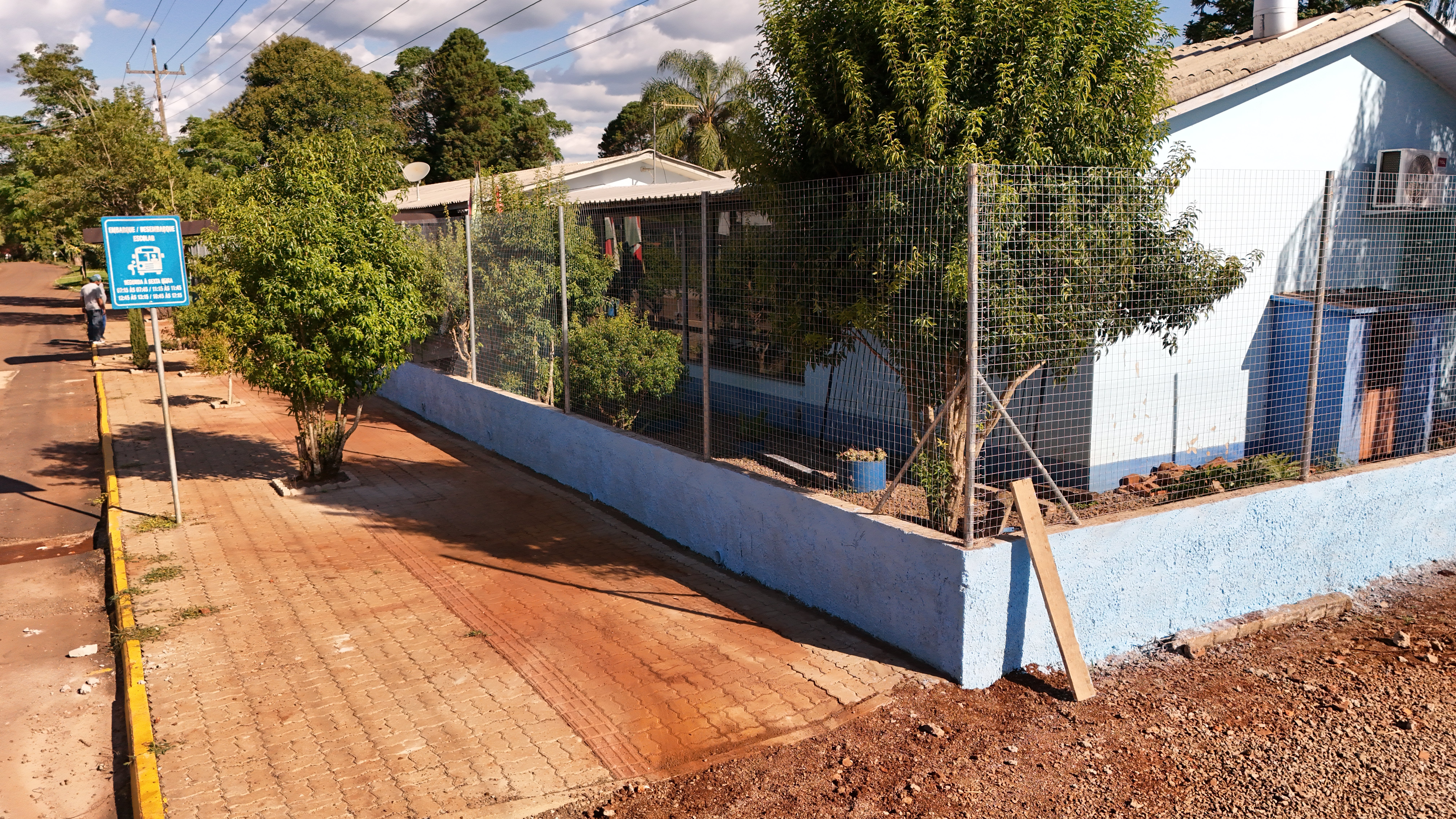 O antigo cercamento apresentava altura insuficiente e fragilidade estrutural. A melhoria realizada contempla 80 centímetros de muro em toda a extensão do terreno e dois metros de tela instalados acima dessa base, formando uma barreira mais alta e resistente, adequada às necessidades da escola.