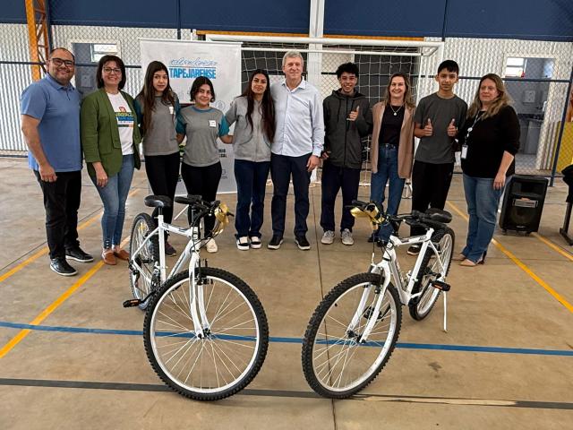 Cada roteiro premiado recebeu uma bicicleta, totalizando quatro bicicletas entregues nesta primeira rodada. Na Escola Ângelo Posser, os alunos Gabriel Richetti, Luana Migon e Evilin Fontana Conte foram contemplados. Na Escola Marieli Andreola, receberam o prêmio Alejandro Bublitz, José Francisco Gonçalves, Rayssa Zucuni Pinheiro, Sophia Silva e Camila Nicolly Gonçalves Nervo.